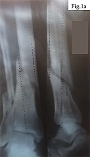 Control radiography (Fig. 5 a, b) demonstrated complete consolidation of the fractures and formation of hypercallus as a marker of restored osteoblastic activity. This confirmed the reversibility of metal-induced immune osteopathy and the importance of correcting immune, vascular, and neurogenic disorders together with ensuring mechanical stability.