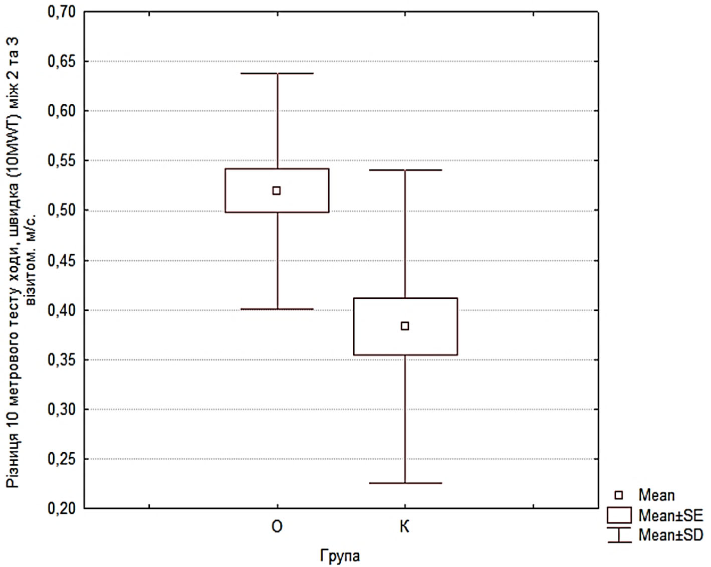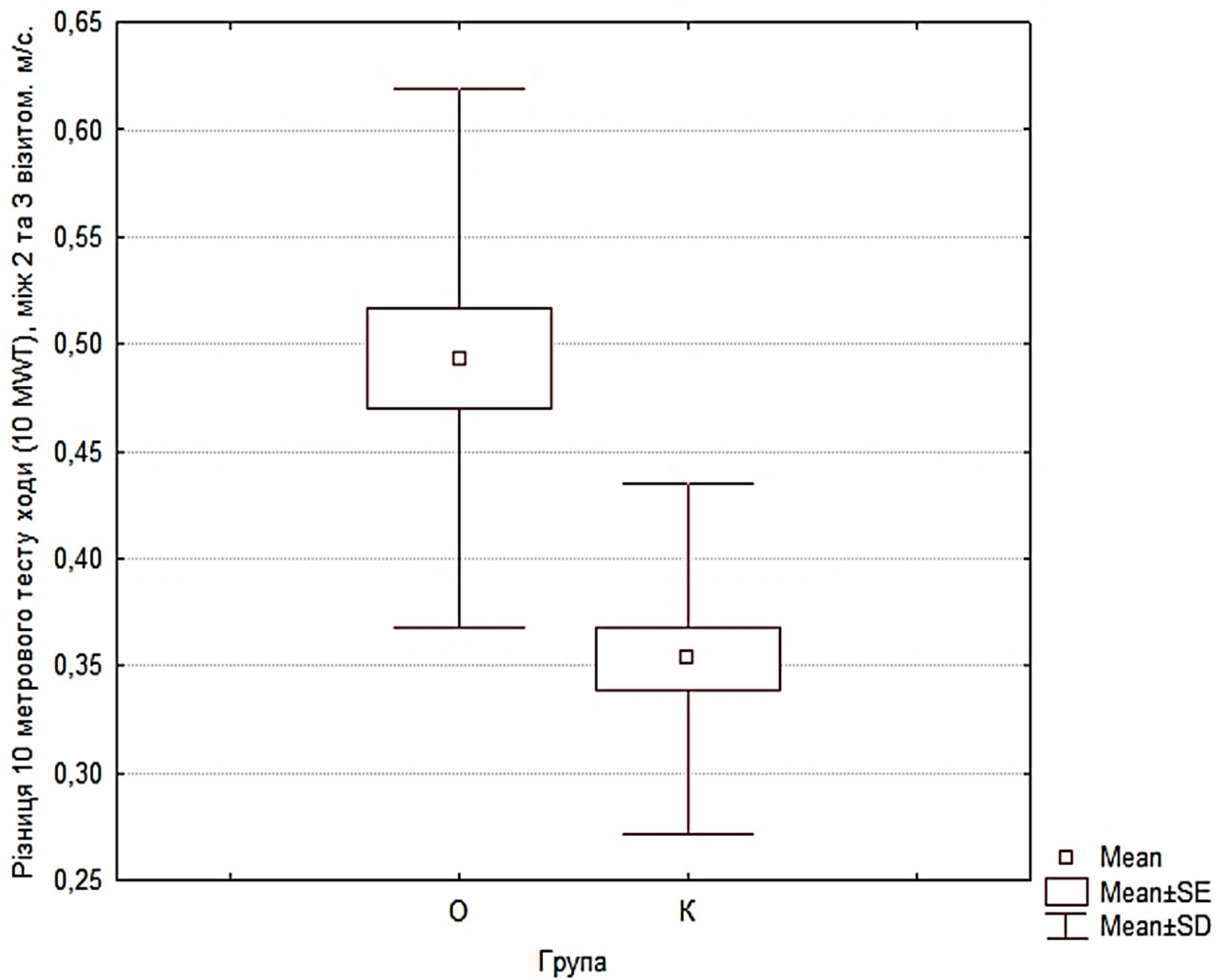 Перевага, зафіксована на завершальному етапі (візит 3), вказує на успішну функціональну інтеграцію отриманих біомеханічних приростів у цілісний акт ходьби. Вища швидкість ходьби в пацієнтів основної групи на момент завершення курсу підтверджує, що застосований протокол дозволяє не лише покращити окремі параметри (силу чи об’єм рухів), а й трансформувати їх у якісну зміну спроможності функції ходьби. Таким чином, роботизована терапія демонструє вищу ефективність у довгостроковій перспективі, забезпечуючи кращу адаптацію пацієнта до щоденних функціональних навантажень.