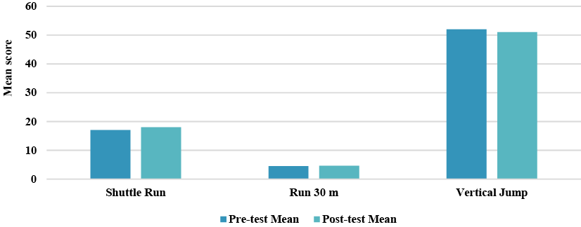 - The physical condition data also showed a slight decline in performance on the shuttle run, 30-meter run, and vertical jump after the post-test, although these changes were not statistically significant.
